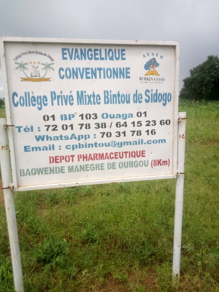 En rappel, Situé dans le village de Sidogo commune d’Ourgou Manega dans la d’Oubritenga ( Chef-lieu Ziniare) à moins d’une quarantaine kilomètres de la capitale Ouagadougou, le Collège Privé Mixte Bintou de Sidogo est un établissement évangélique conventionné qui a ouvert officiellement ses portes en 2017 sous l’autorisation du Ministère Nationale de l’enseignement National et de la Promotion des Langues Nationales. Le lycée disposition d’une infirmerie, d’une cantine scolaire pour le bien-être des élèves.